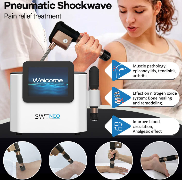 Como dispositivo estrella en el campo de la rehabilitación, esta máquina es una tecnología de fisioterapia no invasiva que permite tratar con precisión los tejidos afectados. Genera ondas sonoras de baja frecuencia y alta energía (ondas de choque) que penetran la superficie de la piel y actúan con precisión sobre las lesiones en los tejidos blandos profundos.