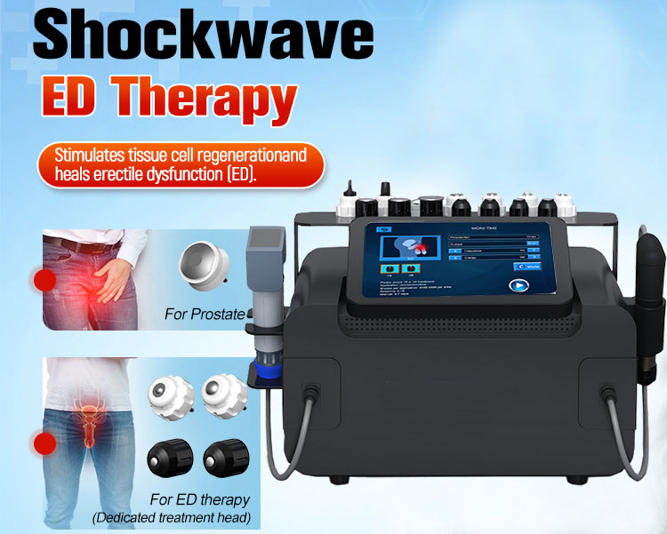 El equipo de terapia de choque promueve la deposición y disolución de calcio, mejorando la circulación sanguínea y aliviando el dolor agudo o crónico. El equipo también puede eliminar los grumos de grasa persistentes mediante vibración física para bajar de peso. Además, ayuda a reparar el tejido dañado de los cuerpos cavernosos del pene para restaurar su función normal.