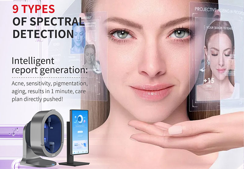 Esta maquina de análisis de la piel genera informes individuales e informes completos en tiempo real para satisfacer las diferentes necesidades de los clientes en cuanto al análisis de los problemas de la piel y la recomendación de soluciones para el cuidado de la piel.