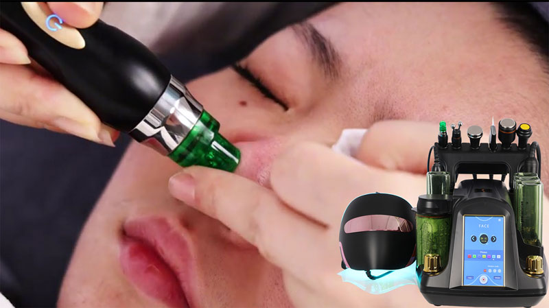 Este innovador dispositivo de tratamiento hidrafacial combina nueve tecnologías: la tecnología microeléctrica promueve el metabolismo celular y mejora la vitalidad de la piel; la tecnología de presión negativa al vacío limpia profundamente los poros; el plasma mata eficazmente las bacterias y combate la inflamación; la tecnología sónica promueve la penetración de esencias en las capas profundas de la piel; la tecnología de energía térmica RF levanta y tensa la piel, remodelando los contornos juveniles; una máscara de vibración de luz colorida utiliza ondas de luz multicolor para reparar con precisión el tono desigual de la piel, el enrojecimiento sensible y otros problemas; la tecnología de pulverización de oxígeno a alta presión introduce moléculas frescas en la piel, iluminándola; y la tecnología de guía de hielo reduce instantáneamente los poros y suaviza y calma la piel.