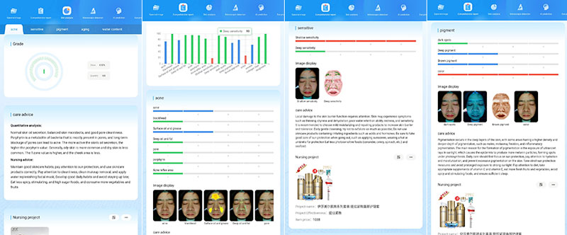 This skin diagnosis machine generates real time individual reports+comprehensive reports to meet clients’ different requirements of skin problem analysis and skincare solution recommendation